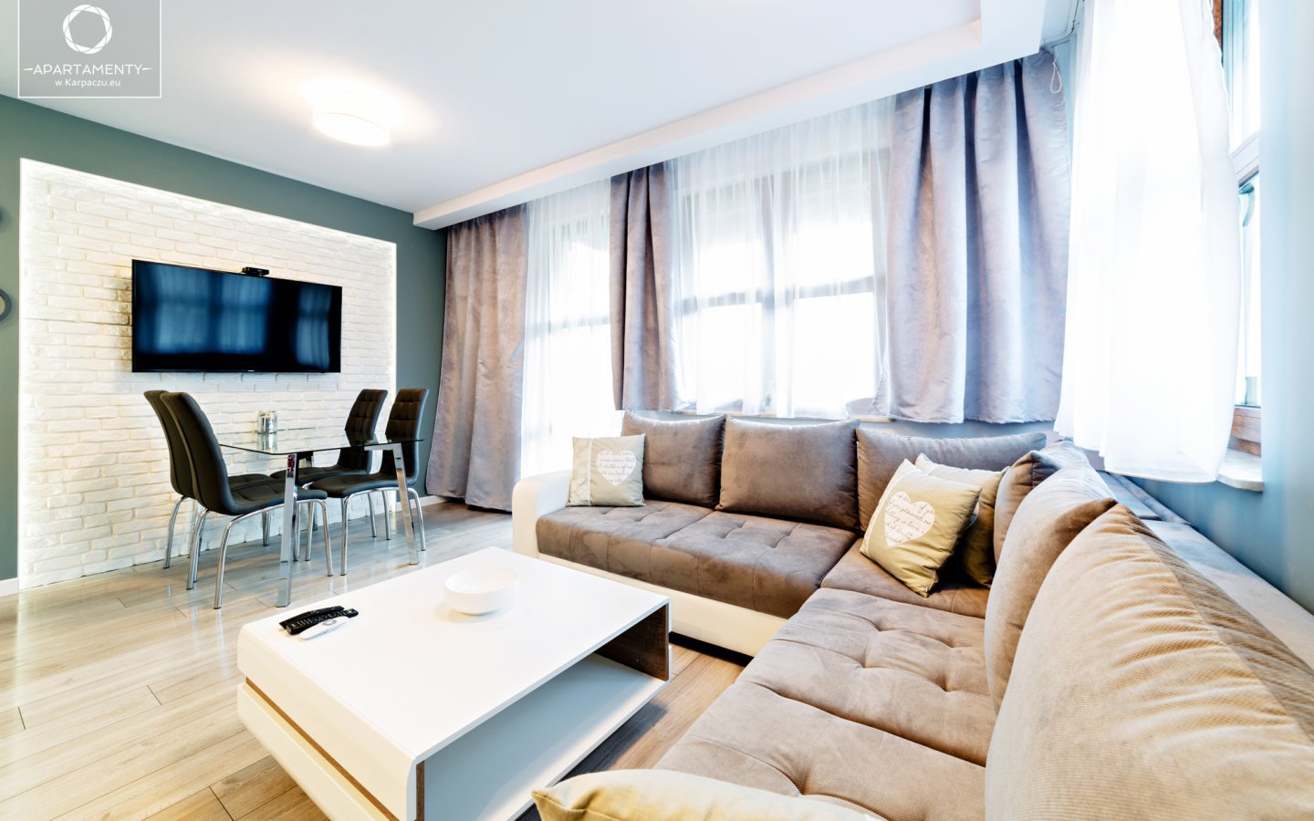 Apartament znajduje się w malowniczej dzielnicy Płóczki, blisko centrum. Jego położenie sprawia, że jest idealną bazą wypadową dla miłośników białego szaleństwa, zwolenników turystyki pieszej i rowerowej, ale również tych, którzy chcą korzystać z uroków nocnego życia Karpacza. Zaledwie parę metrów dzieli apartament od dwóch stoków narciarskich Karpatka I i II oraz najbliższych szlaków turystycznych, w tym Głównego Szlaku Sudeckiego.
